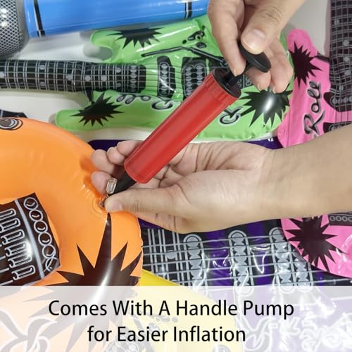 16-Piece Inflatable Guitars Microphones Set with a Small Pump, Jumbo Inflatable Instruments Photo Props, Birthday, Festival, Neon, Disco Party Decorations for Kids & Adults