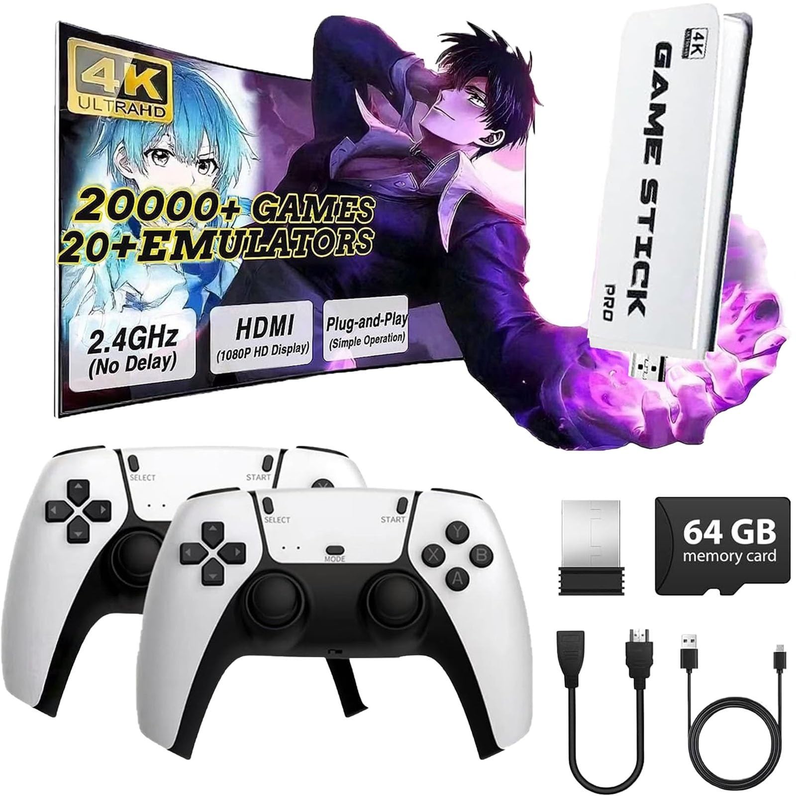 2025 Retro Game Console Video Game Stick, 20000+ Classical Games with Dual 2.4G Wireless Gamepads, 23 Emulators Plug & Play for TV HDMI Output, Gift for Boys and Adults(64G)