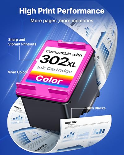 Package Contents: You'll receive a set of 2 RUDGUZ 302XL ink cartridges: 1Black, 1Colour. This ink cartridges is designed specifically for 302XL ink cartridge printers. 302XL ink cartridge offer a higher page output, quickly identifies your printer and offers excellent print quality. Excellent ink quality ensures bright clearer prints