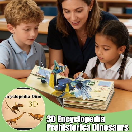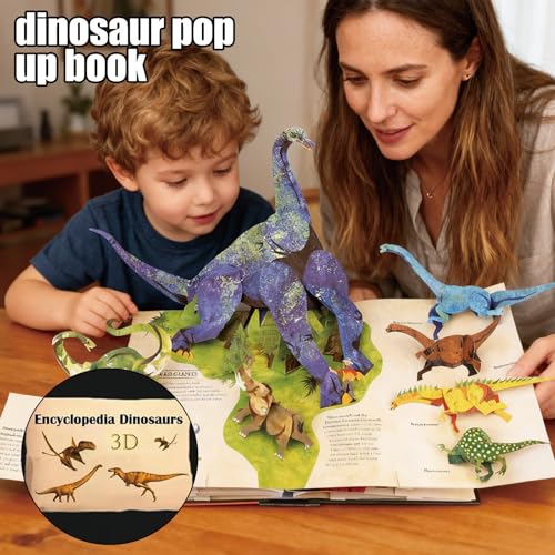 3D Encyclopedia Prehistorica Dinosaurs, Fun Interactive Pop-Up Dinos Book, The Definitive Pop-Up Hardcover, Illustrated Encyclopedia of Dinosaurs & Prehistoric Creatures, Gift for Dinosaur Lovers 【3D Wonder Dinosaur Encyclopedia】: Each page comes with a large 3D model and a mini 3D model book, immersing you in the ocean of prehistoric creatures. 【Interesting Design】Turn the page and a huge Tyrannosaurus Rex leaps out, revealing amazing serrated teeth. On the next page, a stunning raptor stretches its body as if it is about to fly over the edge of the page. 【Interesting story】 There are even amusing tidbits on the history of paleontology itself, like a pop-up version of a Victorian New Year’s dinner in the belly of a dinosaur model, or a pair of scientists locked in a literal tug-of-war over bones. 【Perfect gift for dinosaur lovers】this book also intersperses a lot of interesting stories, And multiple hidden pages and interactive elements make this book not only readable, but also worthy of long-term collection or as a special gift for dinosaur lovers. 【Combining education with entertainment】: Integrating the latest dinosaur knowledge with lighthearted humor through interactive forms. Explaining common and rare species is very suitable for young paleontologists or anyone interested in the prehistoric world.