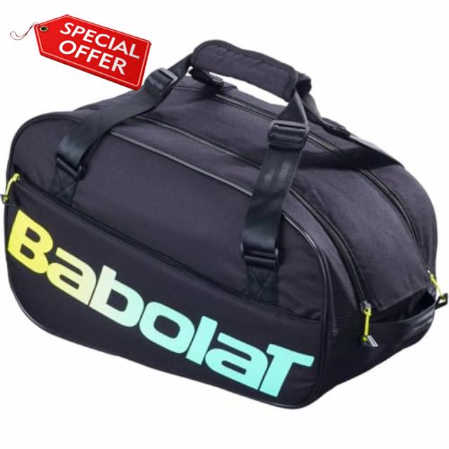 Babolat Court S Bag Black Multicolor, safe and effective transportThe Babolat Court S Black Multicolor is created for those who need a practical and comfortable alternative to carry their sports equipment. With dimensions of 49 x 26 x 30 cm and a total capacity of 35 litres, it provides enough space to store two paddle racket and all the necessary equipment to train or compete. Its main compartment is divided into two sections, facilitating internal organization and allowing to separate the racket from clothes or shoes. In addition, it features an exterior zippered pocket ideal for storing personal items or easily accessible items. The three integrated handles allow you to carry it comfortably, either on the shoulder or in the hand.Highlights of the bag Babolat RH Padel LiteCapacity for 2 paddles thanks to the internal separatorTotal volume: 35 litersDimensions: 49 × 26 × 30 cm1 main compartment divided into two areas1 outer pocket with zip3 ergonomic carrying handlesOuter material 100 % RECYCLED PET: Waterproof and durable”Color Free” inner lining: reduces water consumption and improves internal visibilityIf you want a practical, spacious and ecological padel bag, the Babolat Court S Paletero is your best choice. Get yours now on our website and start training in a unique style!