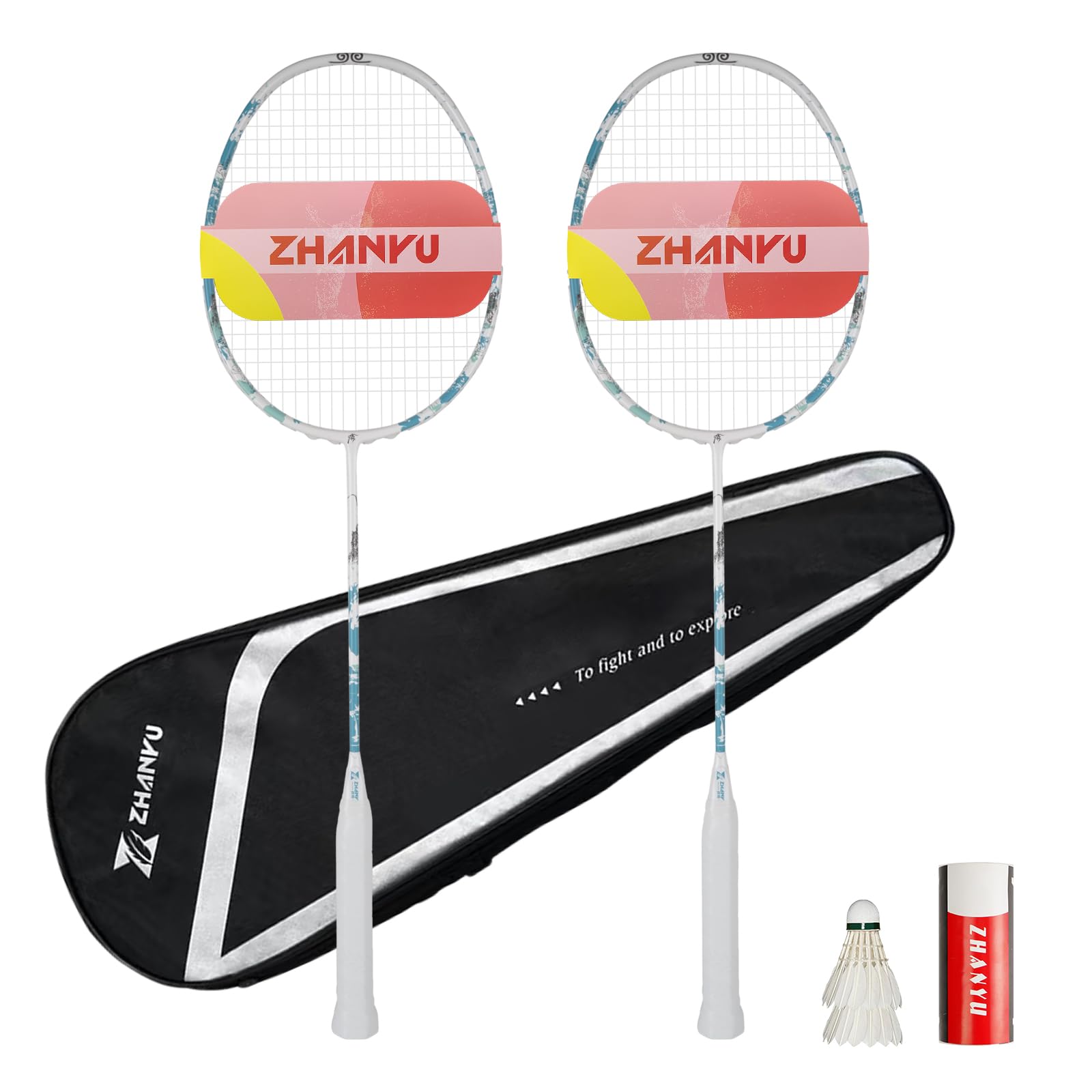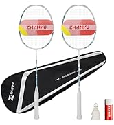 Badminton Racket Set,Badminton Rackets,Lightweight 82g 100% All Carbon Fiber One-Piece Molded Professional Racket With Both Offense And Defense,Including 2 Rackets,2 Shuttlecocks,And 1 Ball Bag