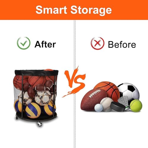 - Spacious Large Capacity Storage: Holds multiple balls of various sizes including basketballs, soccer balls, volleyballs, and more, helping you keep your outdoor or garage area neat and organized without clutter