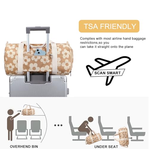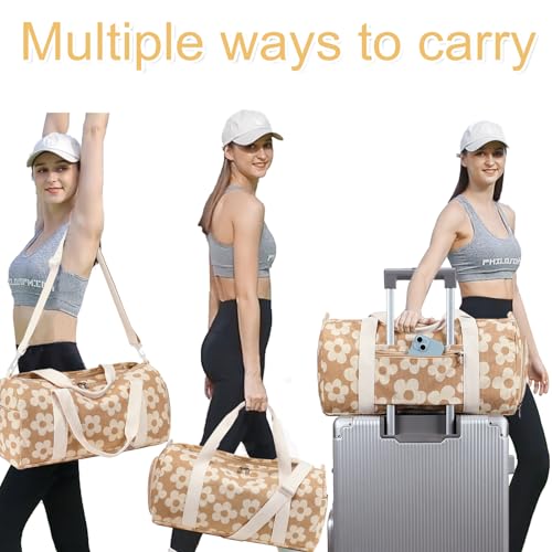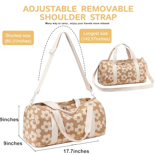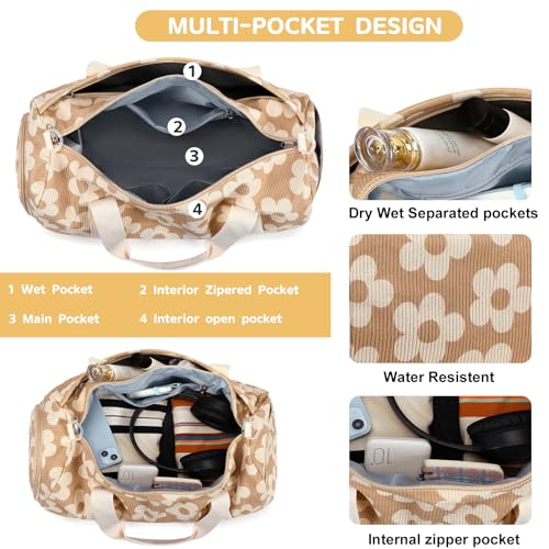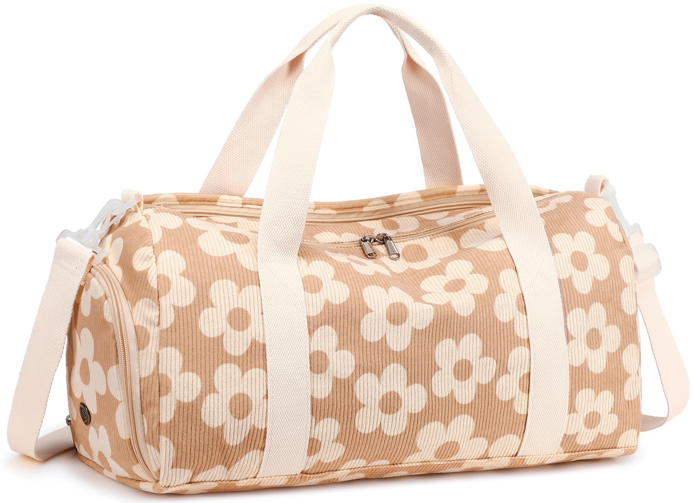BLUBOON Duffle Bag Girls Kids Cute Gym Bag with Shoes Compartment & Wet Separation Waterproof Sports Overnight Travel Bag (Beige Large Floral 157)
