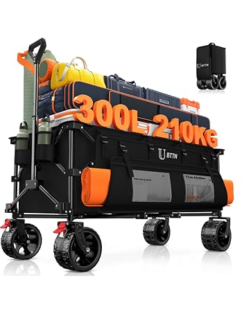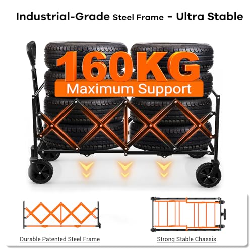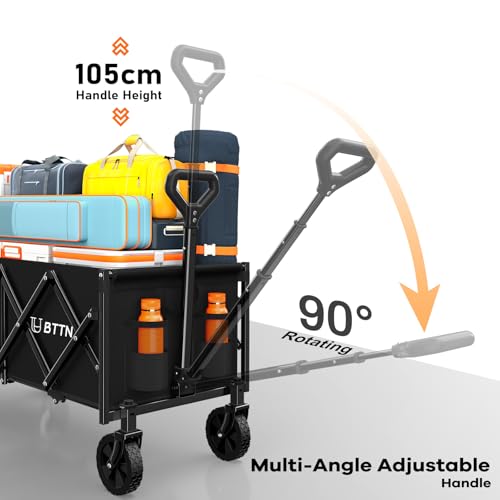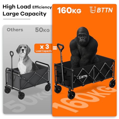 BTTN 120L Extra-Long Folding Festival Trolley on Wheels, 160kg (350LBS) Capacity Shopping Trolley with Silent Wheels, Foldable Camping Garden Cart with Adjustable Handle, Portable Utility Wagon, Black