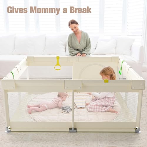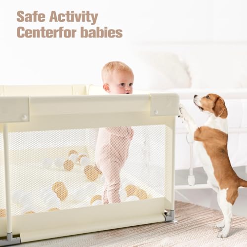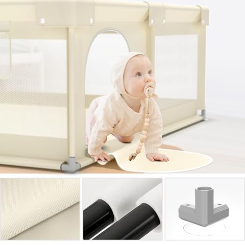 This beige large baby playpen creates a safe baby fence play area for crawling, walking, and play. The toddler playpen is stable, non-toxic, and easy to set up, making it the ideal kids play pen at home or outdoors