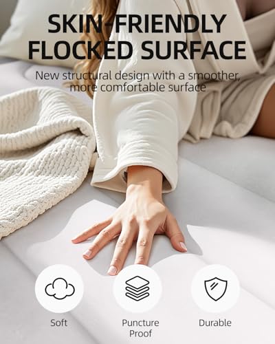 - 【Premium Comfort & Durable Materials】The top layer of the mattress is made from soft, waterproof flocked material that creates a cozy sleeping surface. Its thick, multi-layer PVC construction ensures long-term resilience and quality, making it ideal for frequent use. For safety and performance, avoid placing sharp objects on the mattress and always set it up on a clean, flat surface.