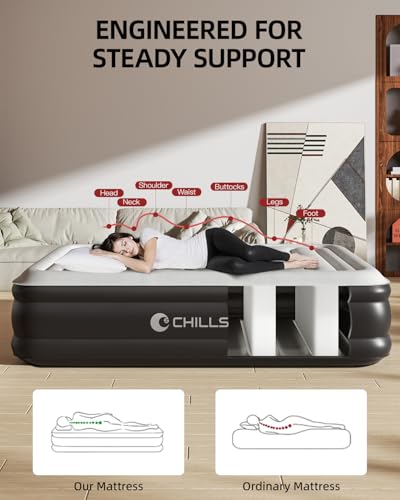 - 【Upgraded Air Retention Technology】CHILLSUN Luxury Double/King Inflatable Mattress is designed with an internal support structure that mimics the design of a traditional bed to provide unrivalled support and comfort throughout the night. A travel bag is included with the inflatable mattress for easy packing and transportation.