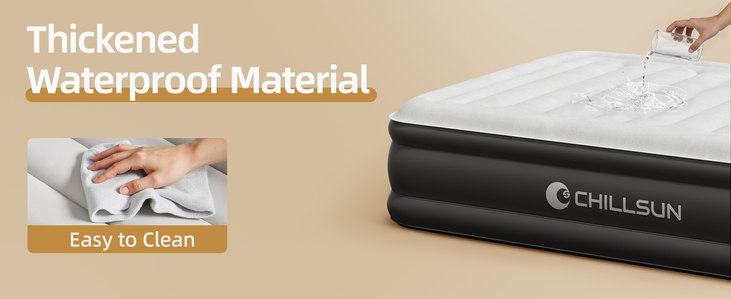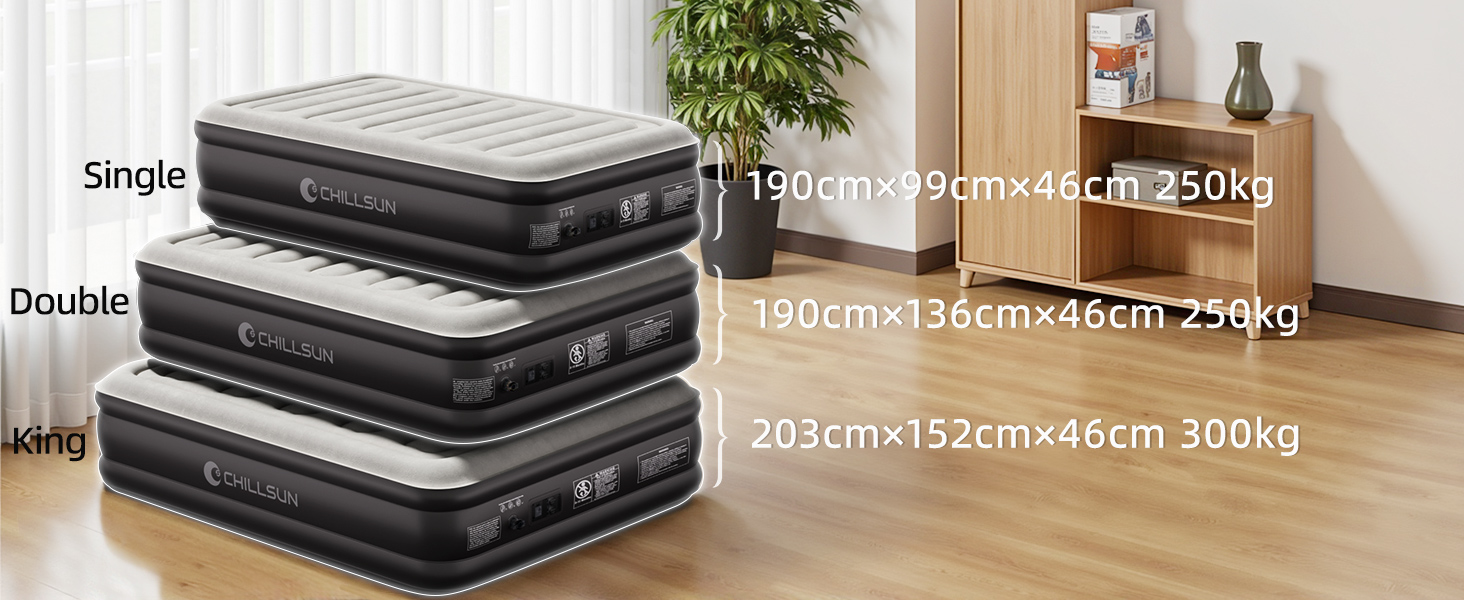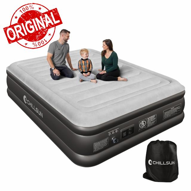 - 【Quick and Easy Set up】The CHILLSUN air mattress features an integrated electric pump that inflates or deflates the bed in just 3 minutes. You can easily adjust the mattress to your preferred firmness and comfort level with the built-in pump, perfect for hassle-free setup anytime, anywhere.
