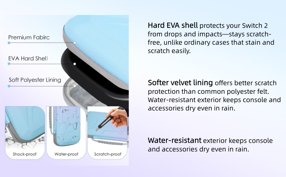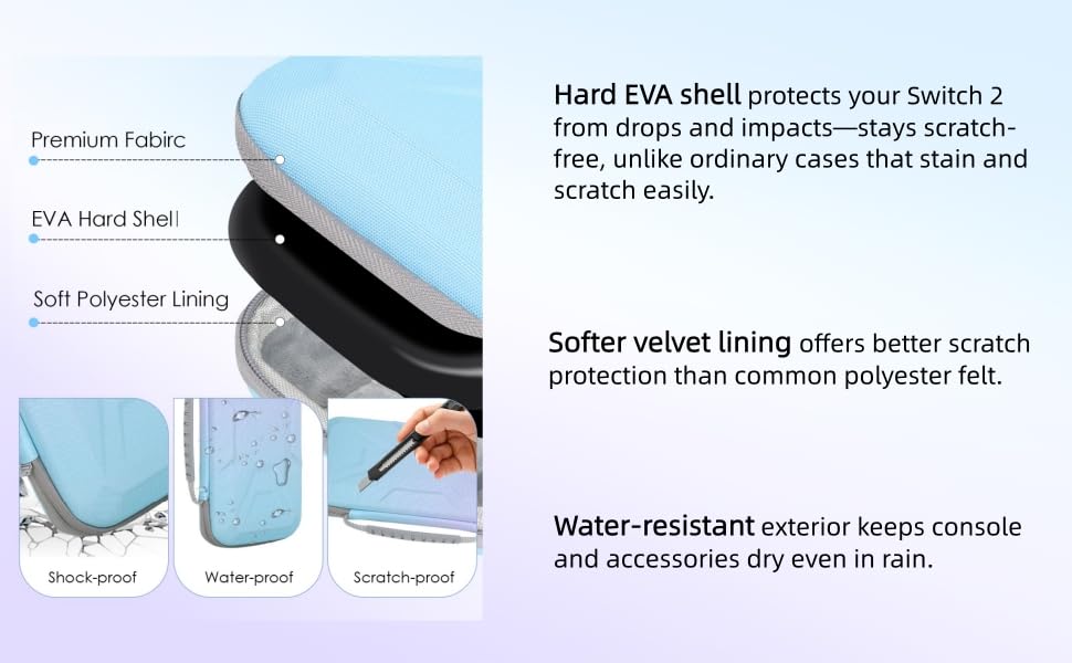 - 【Water-Resistant & Durable】Made with a water-resistant outer shell to protect your switch2 from spills and light rain. A must-have among this nintendo switch 2 accessories for on-the-go gamers.