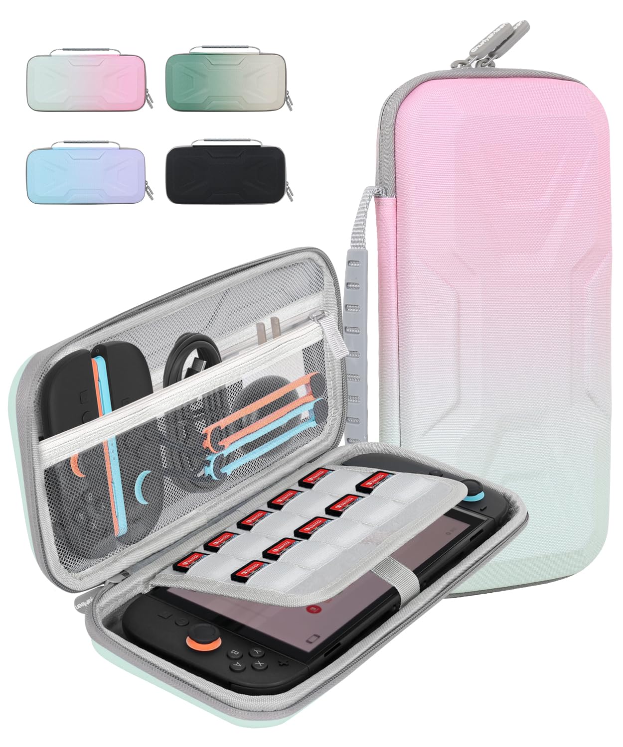 - 【Stylish & Vibrant Look】Available in four eye-catching gradient colors: Black, Pink, Green, and Purple. Smooth double zippers ensure easy access and durability. Perfect for gamers who love style and functionality while enjoying your nintendo switch 2 games.