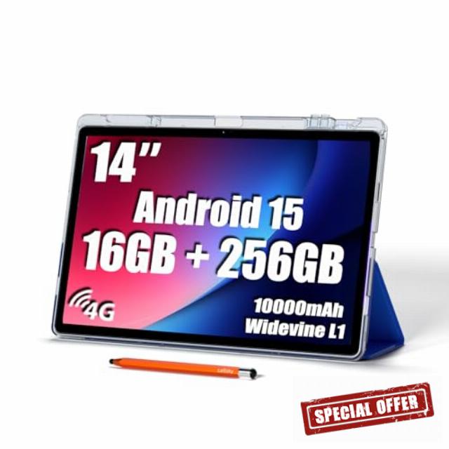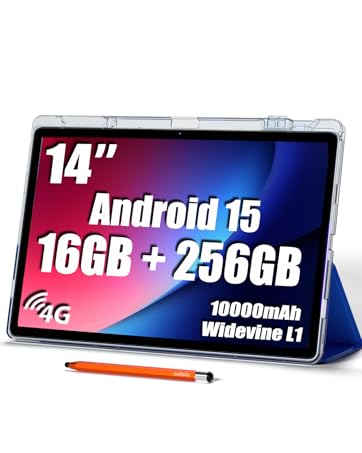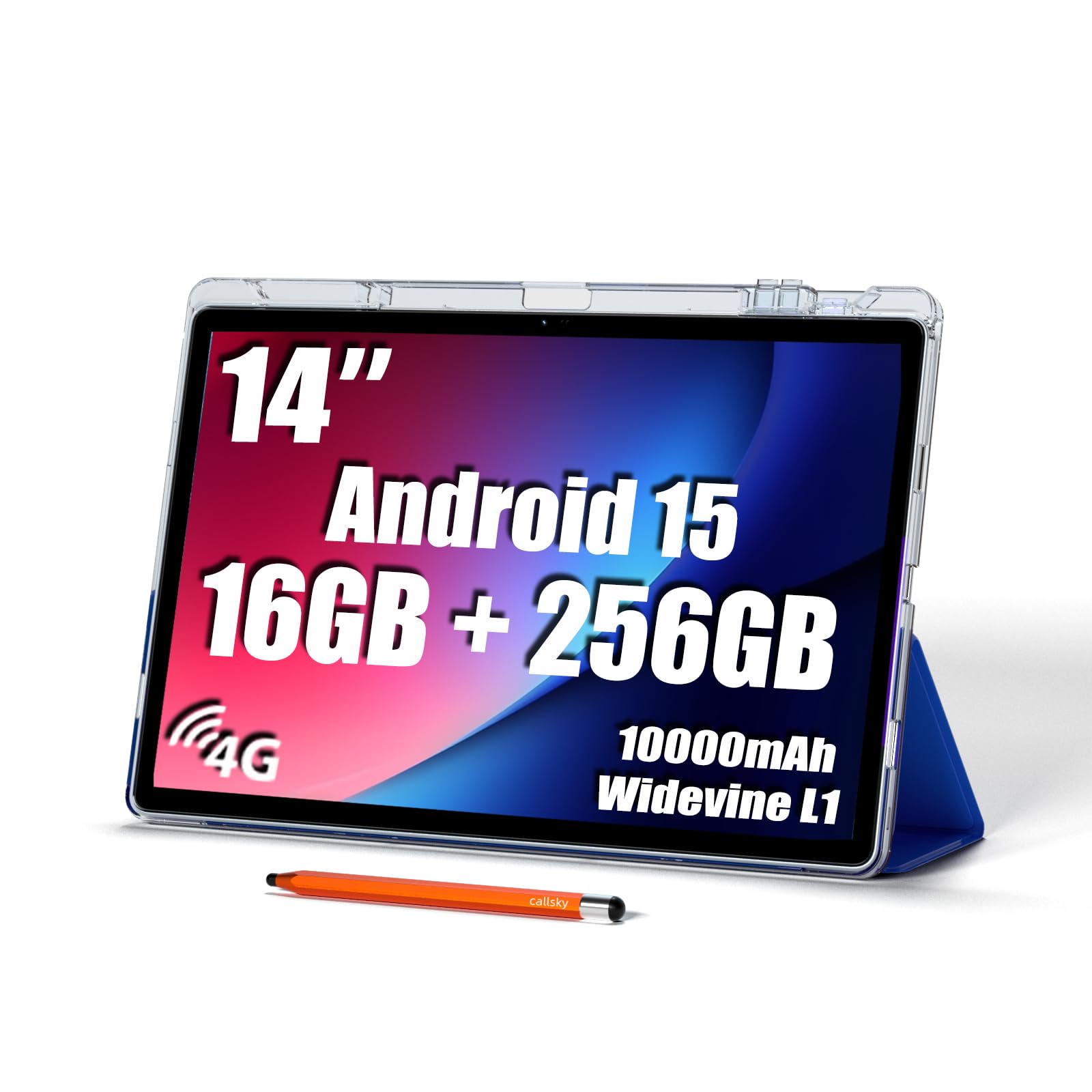 Ckypad 14 Inch Tablet,Android 15 Tablet,1200×1920 FHD Large Screen,16GB RAM+256GB ROM,Octa-Core Gaming Tablets,10000mAh,Large Tablets with Widevine L1,with Stand Case & Stylus,18W PD Charger,4G LTE