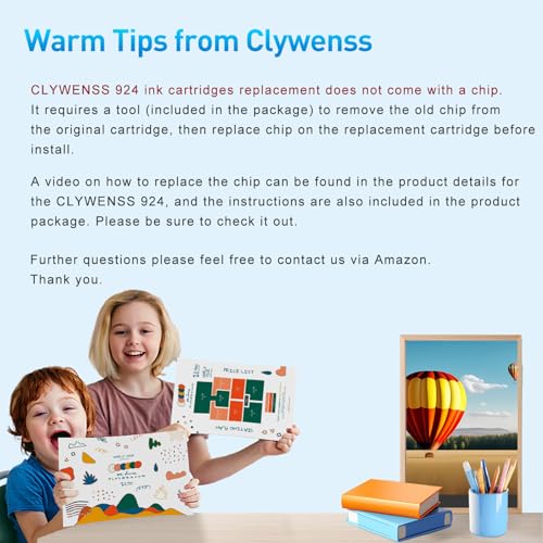 - Please Note: CLYWENSS 924 ink cartridges replacement does not come with a chip. It requires a chip tool (included in the package) to remove the old chip from the original cartridge, then replace chip on the replacement cartridge before install