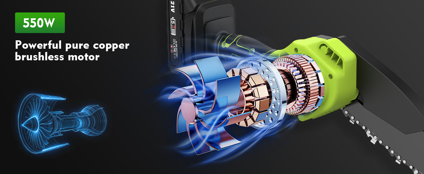 - ✅ Pure Copper Brushless Motor ✅ This pure copper motor delivers powerful power, reaching speeds of up to 22,000 rpm (up to 25,000 rpm when unloaded), making cutting easier and faster without causing arm fatigue. The motor's high-heat dissipation system and large side air cooling vents dissipate heat within the machine, preventing burnout from prolonged use. Powerful, durable, and stable.