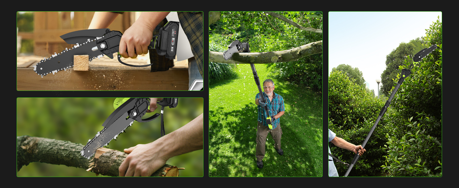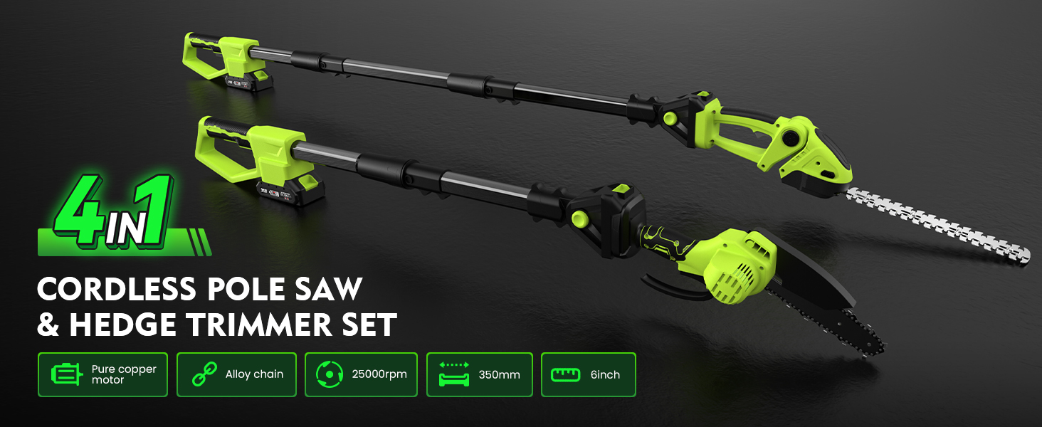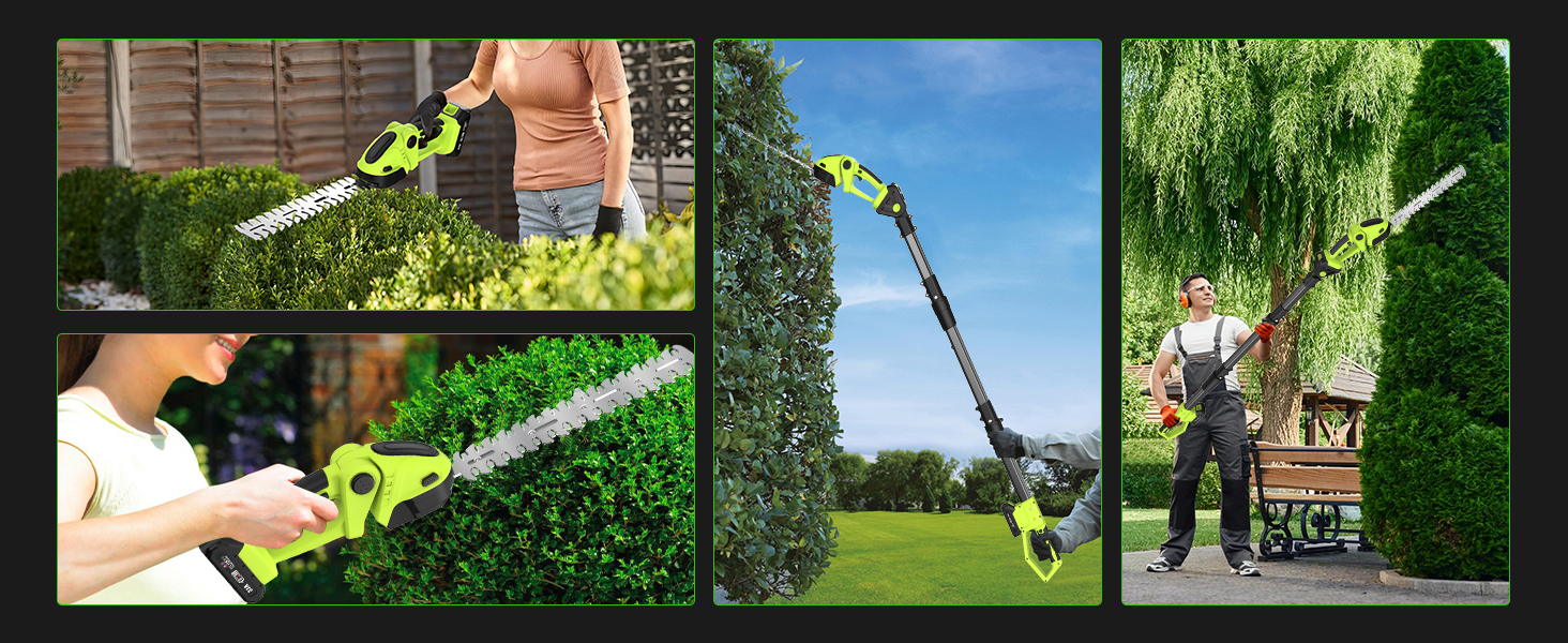 - ✅ The Best Pruning Companion✅ This cordless pole saw/hedge trimmer is versatile and a great companion for pruning in your home, garden, yard, or farm. It helps you efficiently, quickly, and accurately cut wood, saw trees, and trim branches, creating a more comfortable living environment. It's an indispensable tool for your daily life, allowing you to enjoy the convenience of a portable pruning solution.