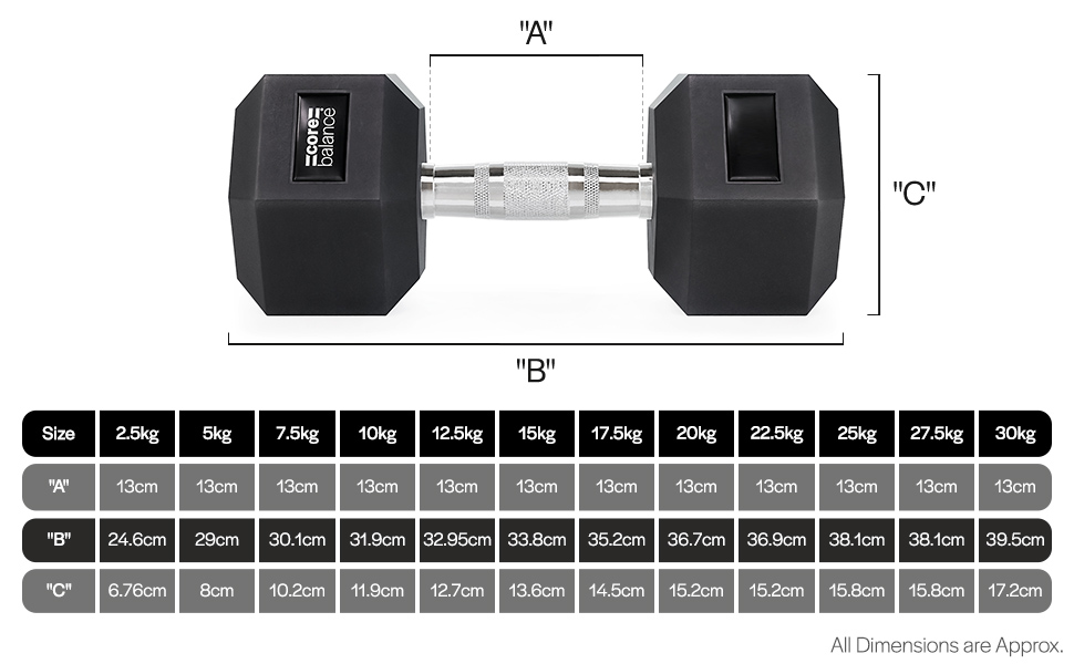 - Strength train like a pro with a pair of Pro Hex Dumbbells from Core Balance. Designed to a gym-quality standard, they come in a choice of weights (2 x 2.5kg to 30kg) to suit your fitness level.