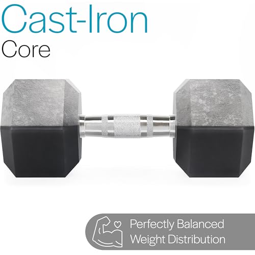- SOLID CAST-IRON CORE: Each dumbbell has a heavy-duty cast-iron core for superior strength and an evenly balanced weight. Because they're perfectly balanced, it reduces strain on your joints and muscles when lifting. So, you can target your muscles more effectively and elevate your performance.