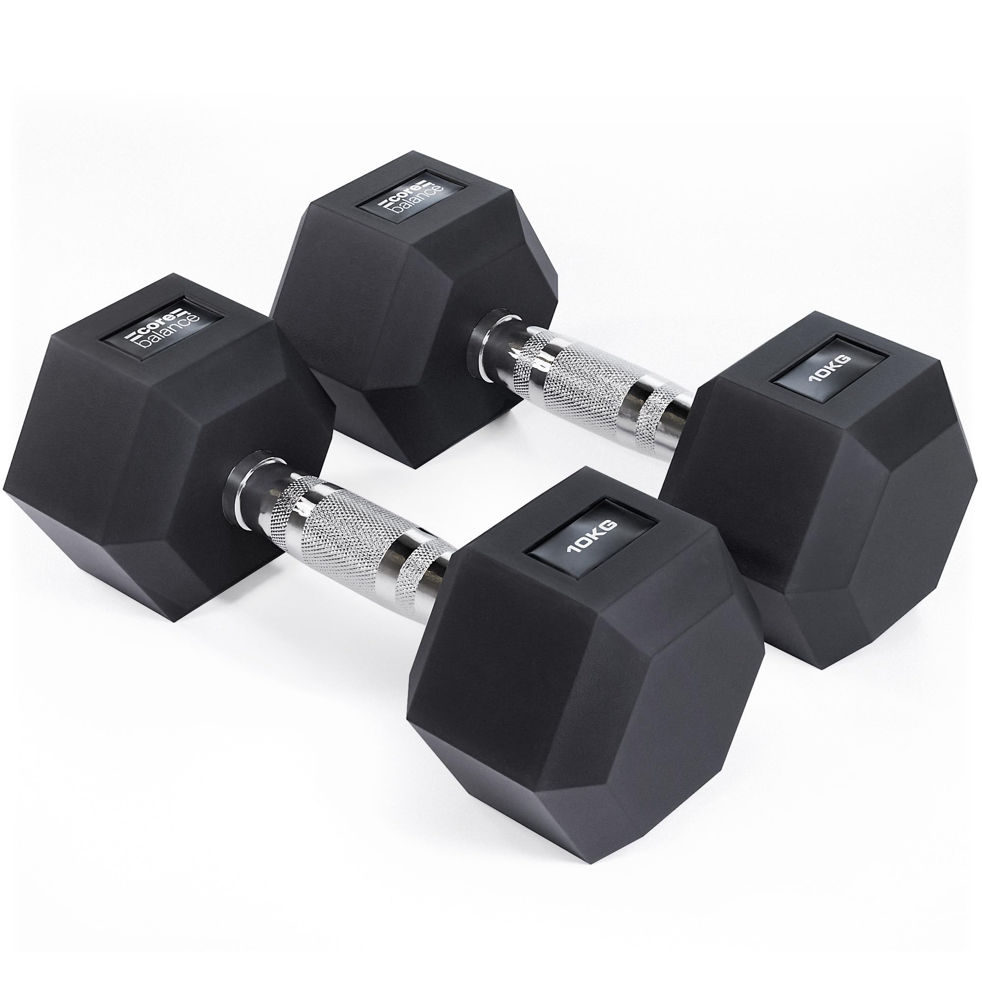 - 2 x 10KG PRO HEX DUMBBELLS: Strength train like a pro with a Pair of 10kg Pro Hex Dumbbells from Core Balance. Designed to a gym-quality standard, they come in a range of weights (2.5kg to 30kg) to suit your fitness level. Perfect for progressive training, from beginners to advanced athletes.
