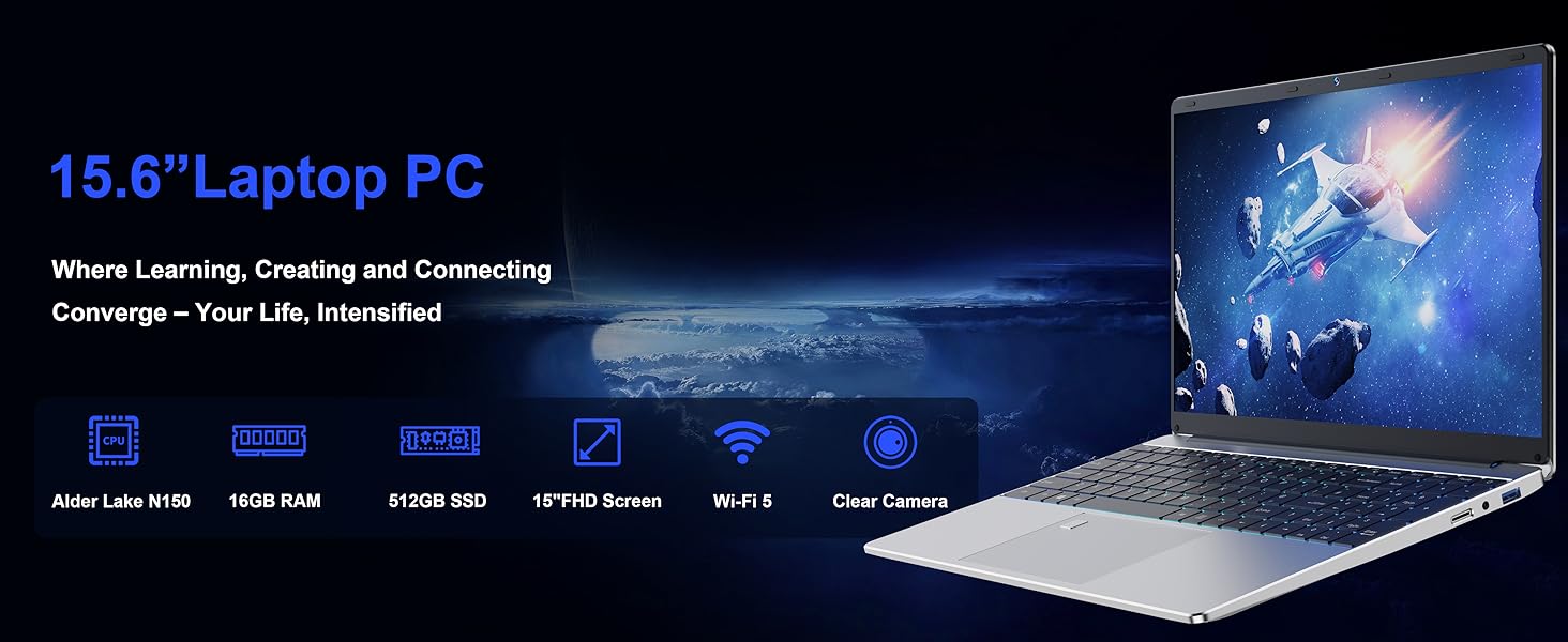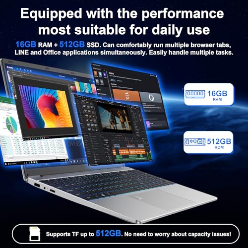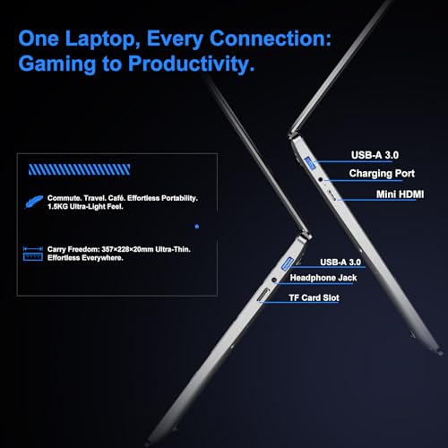 【16GB RAM 丨 512GB SSD Laptop】 Experience seamless laptop computing with 16GB DDR4 RAM that effortlessly handles multiple applications, browser tabs, and documents simultaneously. The lightning-fast 512GB SSD in this laptop delivers instant boot-ups and quick file access while providing ample storage space for projects, media, and documents. Laptop for students juggling research papers and presentations or professionals working with large datasets and complex files.