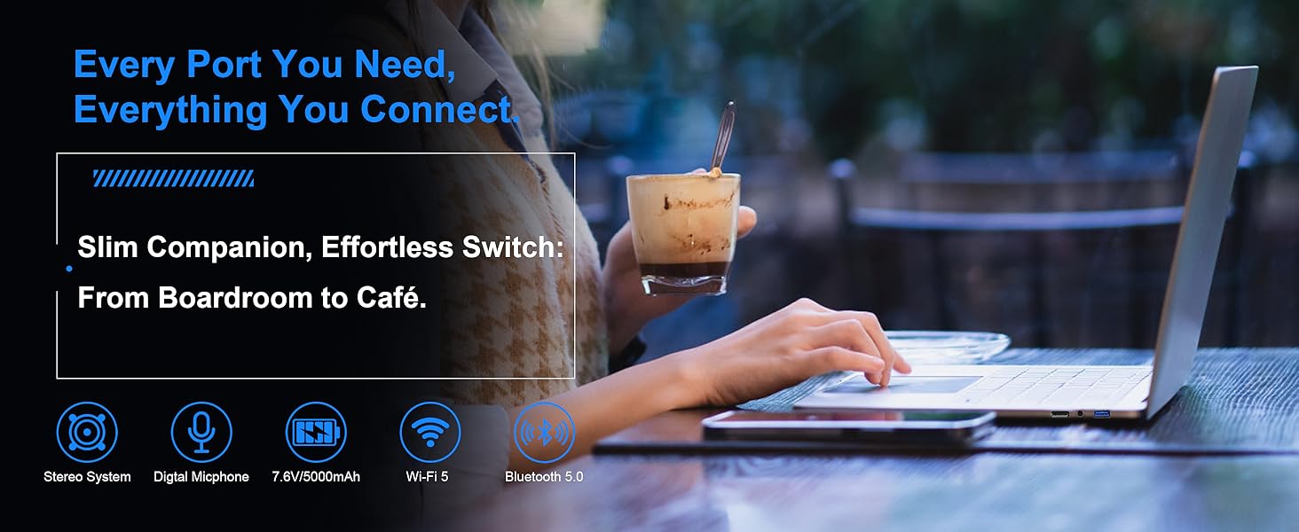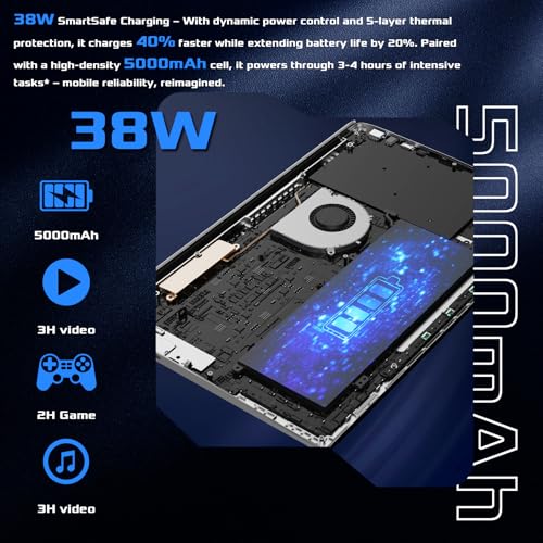 【Thin & durable | 5000mAh long battery】 Weighing just under 4 pounds with a sleek design, this sturdy device slides effortlessly into any bag. Its 5000mAh battery provides 3-4 hours of uninterrupted work, with intelligent power management for classrooms, coffee shops, or home offices.