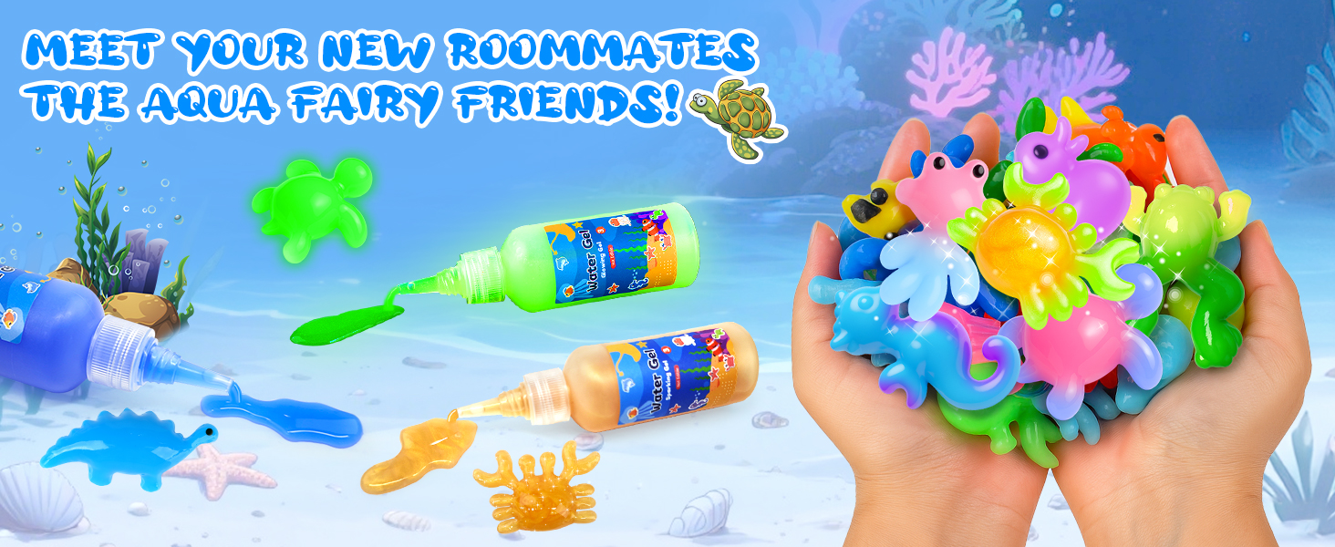 - 【Mini Display Bottle Included】This magic water gel kit also includes a mini display bottle to store finished Aqua Fairy creations. It prevents drying or deformation and allows kids to proudly show off their little “ocean pets” to friends and family. Note: Keep finished gel creations in water to avoid cracking or shrinking.