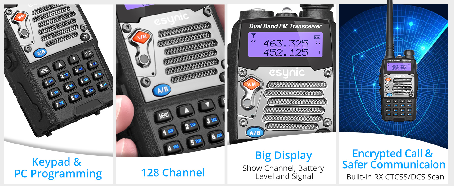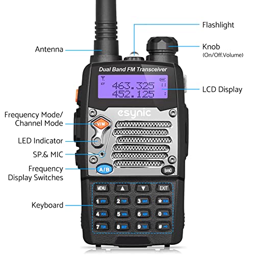 eSynic uv5r Professional 5W Walkie Talkies Rechargeable UV-5R Radio Walkie Talkies Dual Band VHF/UHF Clear Calls Long Range 2 Way Radio with LED Display 128CH Supports VOX FM Functions for In&Outdoo