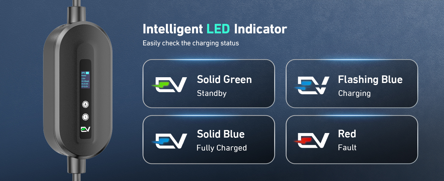 【Clear Charging Statue Monitoring】The type 2 charging cable 3 pin features an LED screen, allowing you to monitor charging status in real-time, including current, voltage, temperature, and charging duration, etc. And the 3 pin ev car charger also includes a stylish LED indicator light, enabling to monitor the charging status even in low-light conditions where the screen may be difficult to read