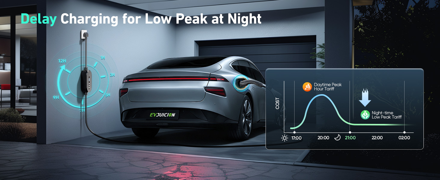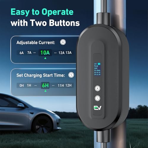【6-13A Adjustable and 0-12 Delay Charging】 The EV charger 3 pin plug with 2 operation buttons for simplified usage. The electric car charger 3 pin supports more precise current adjustment (6/7/8.12/13A), flexibly adapting to different household circuit conditions or vehicle requirements. 6-10A is suitable for daily charging, and 11-13A is ideal for emergency short-term charging. The built-in 0-12H delayed charging function helps you easily take advantage of off-peak electricity rates