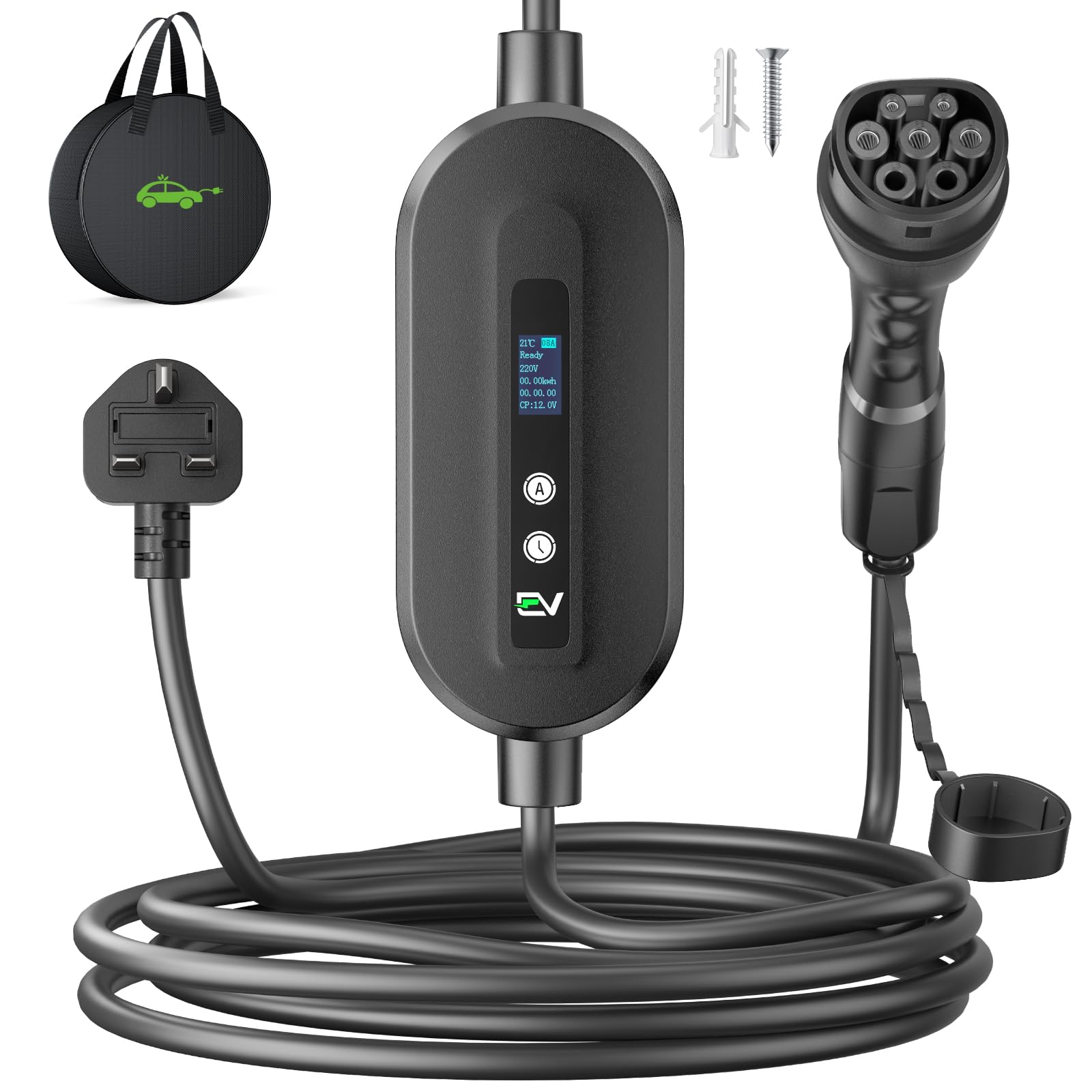 【High-Efficiency Charging】The EV charger cable type 2 to 3 pin plug features a Max. 13A and Max. 3.12 kW. The 13A to achieve speeds up to 10-16 miles per hour – 2× faster than a standard 6A EV charger. Equipped with a standard UK 3 pin plug, the 3 pin EV charger is simple to use and highly portable, making it an ideal choice for home backup charging and travel charging