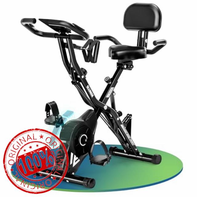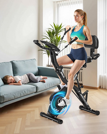 5-IN-1 FOLDING EXERCISE BIKE FOR HOME:Choose from different positions at your leisure: upright position for a classic riding experience; racing position for high-intensity aerobic training; semi-recumbent position for a more relaxed riding experience. For a balanced training, this exercise bike also comes with hand and leg resistance bands for rowing and stretching exercises. Owning this exercise bike is like owning a small gym – and it's worth the money!