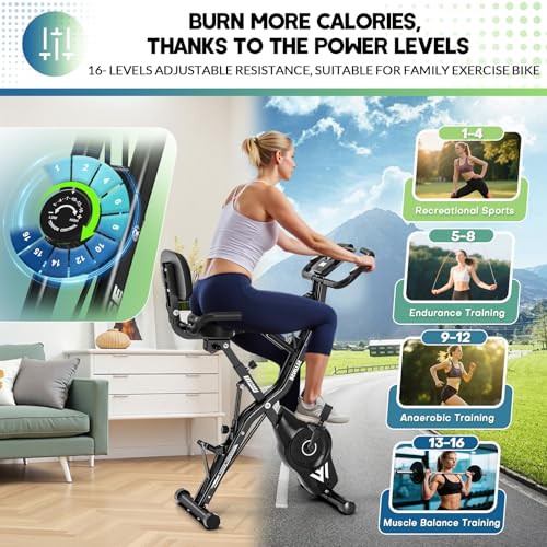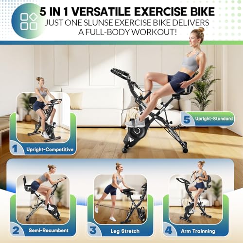 Exercise Bike for Home, SLUNSE 5 IN 1 Indoor Workout Bike,16-Level Magnetic Resistance Folding Stationary Exercise Bike, 350LBS Capacity and Comfortable Seat Cushio