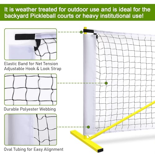 - * 【Material】: Portable Pickleball Net is made of high strength PE nylon and polyester, which is wear resistant to ensure long-term use without damage