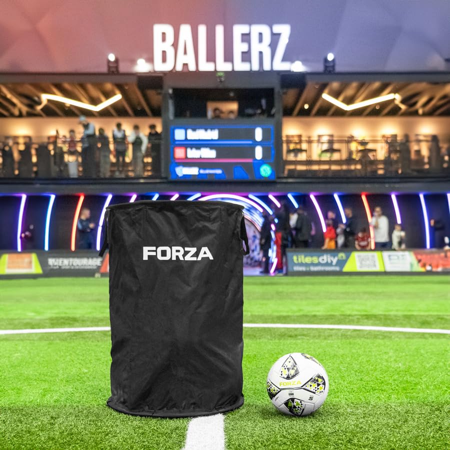 FORZA Ball Bin – Portable Sports Ball Storage & Trick Shot Target – Holds up to 45 Size 5 Balls – Collapsible Frame with Carry Bag – Ideal for Football, Rugby, Basketball & More