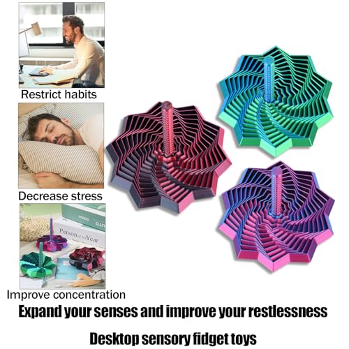 Fukaisu 3pcs Expanded Sensory Fidget Stars, 3D Printed Spiral Decompression Star with Handle Hexagonal Honeycomb Fidget Toy for Office Desks Gift (Small)