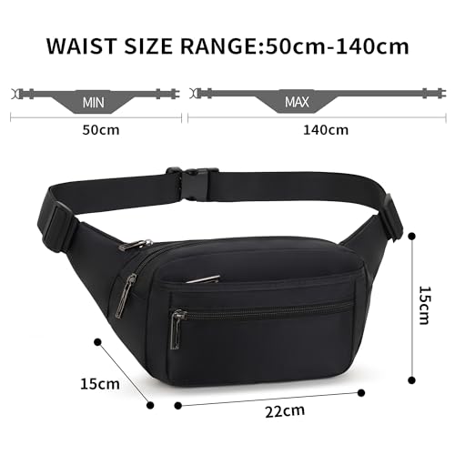 - The waist belt provides 50-140cm of adjustment, which can be easily adjusted to your own size. This bumbag is suitable for both men and women, also the fat and the slim.