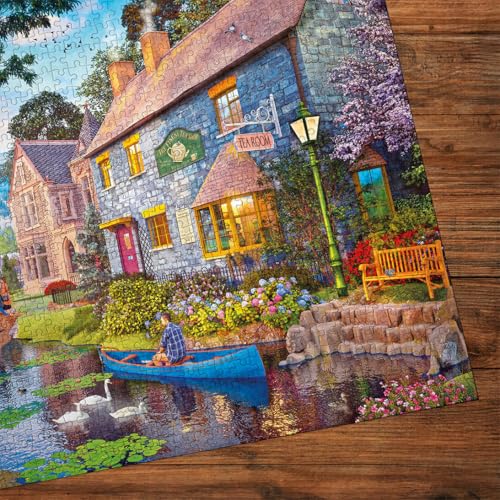 Gibsons Tea on the River 1000 Piece Jigsaw Puzzle for Adults Colourful Countryside Village Scene Eco-Friendly Puzzle Made from 100% Recycled Board Premium Gift for Puzzle Lovers