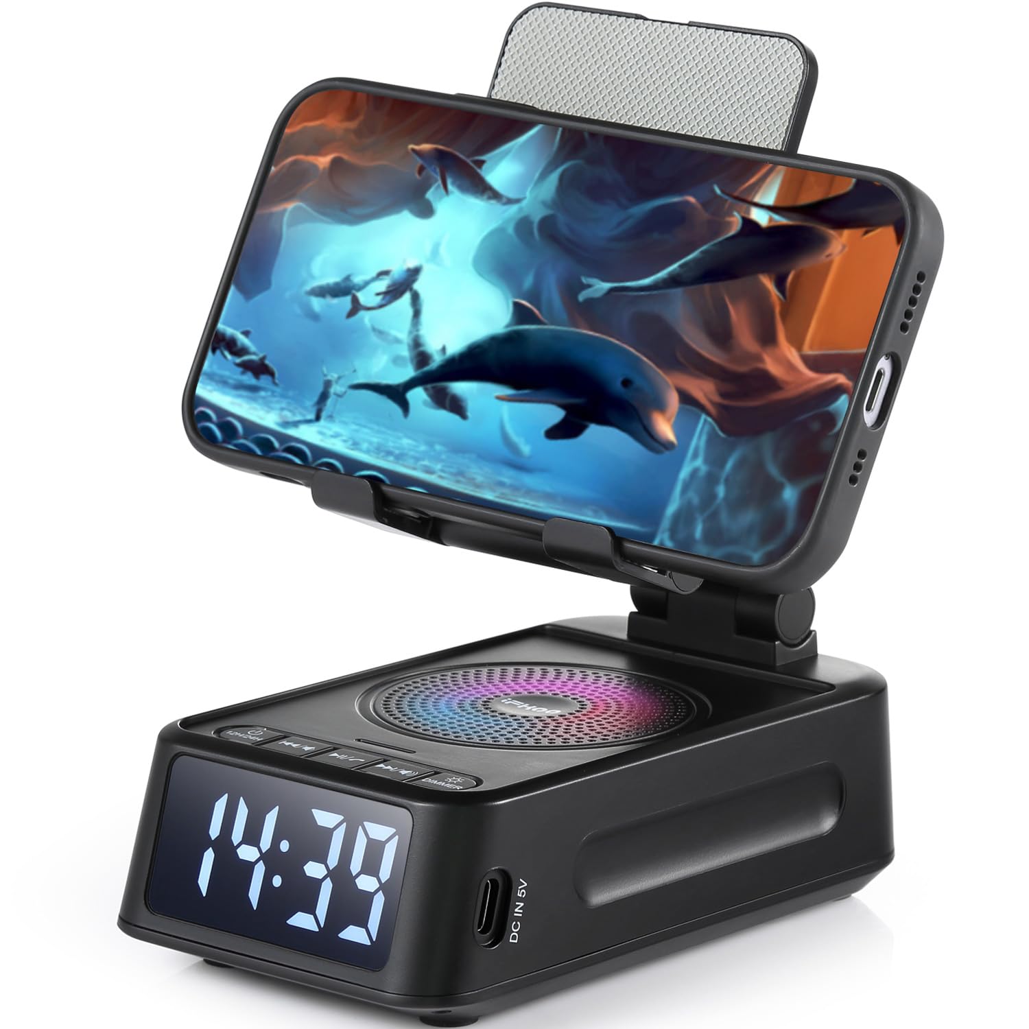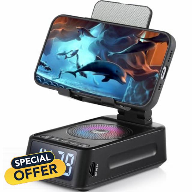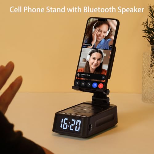Gifts for Men Women, Phone Stand with Bluetooth Speaker&Clock, Birthday Gifts for Him, Phone Holder with Wireless Speaker, Ideal for Dad Mom Husband Boy, Cool Tech Gadget for Me