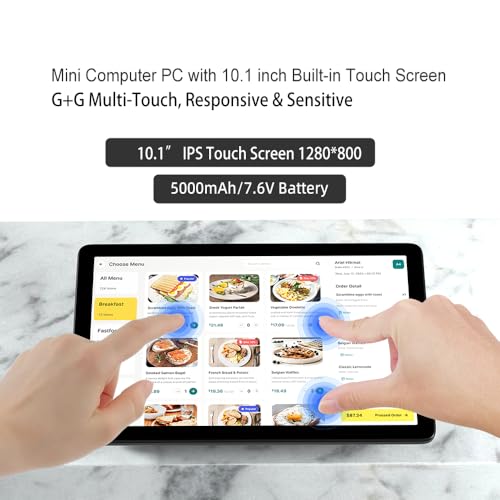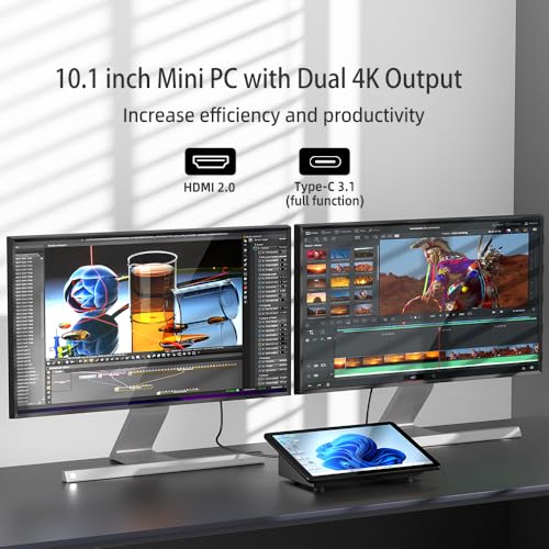 Compact Mini PC with Large Memory–A 10.1-inch touchscreen mini computer pc running Windows 11 Pro, designed for seamless productivity. Equipped with 8GB high-speed LPDDR4 RAM and 128GB eMMC storage, this mini PC delivers lightning-fast performance for multitasking.