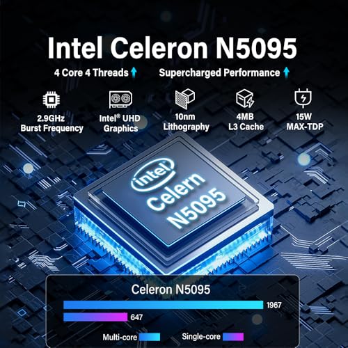 Powerful Touchscreeen Mini PC– Experience desktop-level performance in a compact design. Powered by the efficient 12th Gen Intel N5095 Processor (4 cores, 4 threads, 6MB cache, 2.0GHz base frequency, up to 2.9GHz turbo), this mini desktop pc delivers smooth multitasking for everyday computing.Ideal for web browsing, email, document editing, home office tasks, and even light photo editing,