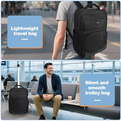 Hivexagon 21 Inch Rolling Backpack Water Resistant Wheeled Anti-Theft Laptop Backpack Hand Luggage Business Bag Large Capacity Multi Compartment Storage for Carry On Luggage Travel