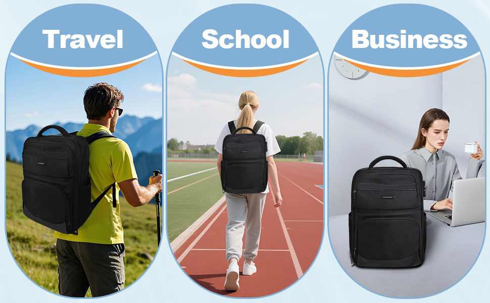 - Large capacity and practical compartment: Backpack size: 7.87 x 13.38 x 19.68 inches. The large compartment has a laptop compartment that can accommodate up to 35cm x 26cm (length * width) laptops. There are 2 side elastic pockets for storing beverages, and the front zipper pocket and combination bag can store multiple layers of storage such as phones, tissues, umbrellas, keys, etc. It can be freely opened up to 180 °, allowing you to quickly pass through airport security and keep other items tidy.