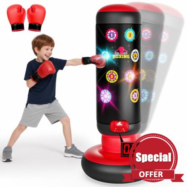 【4 Game Modes】This inflatable punch bag includes 4 exciting play modes: Free Punch, Challenge, 2-Player Race, and Memory Mode. Whether kids want to practice solo, compete with friends, or combine memory with boxing, this kids punch bag makes exercise fun and never boring