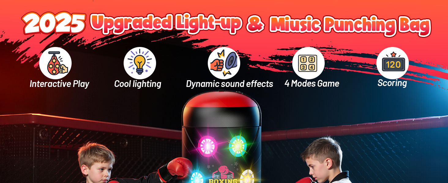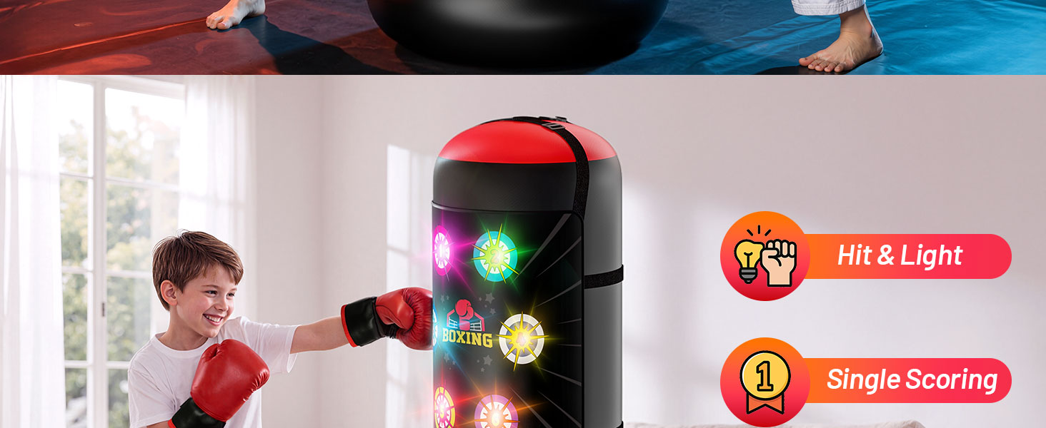 【Immersive Light & Sound】Our interactive punching bag for kids features dazzling lights and fun sound effects. Every punch lights up the target and triggers sound effects, creating an exciting boxing bag experience—especially in darker rooms. Kids instantly feel like they’re in a real boxing arena