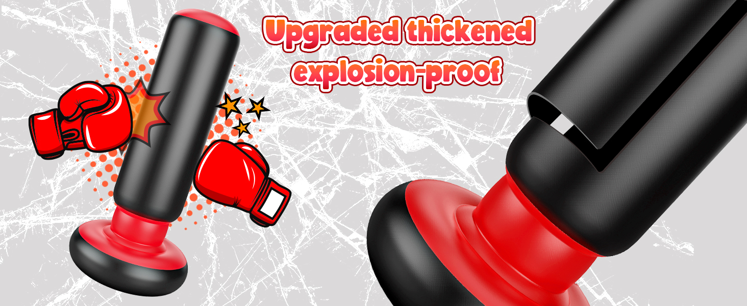 【Durable & Safe】Made of upgraded thickened materials, this standing punching bag withstands vigorous punches and kicks while staying stable. The included kids boxing gloves(1 pair) protect small hands, ensuring safe and enjoyable play indoors or outdoors. A reliable piece of kids boxing equipment for everyday exercise