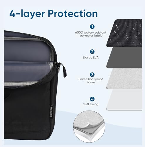 - [4-Layer Protection]: the 15.6 16 Inch laptop shoudler bag provides 4-layer protection for your laptop. 1. Outer layer is made of 600D water-resistant polyester fabric, 2. Elastic EVA, 3. 8mm thicker Shockproof foam padded in middle; 4. inner soft lining.