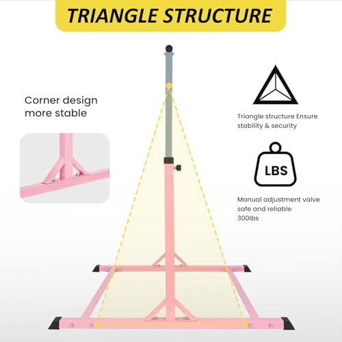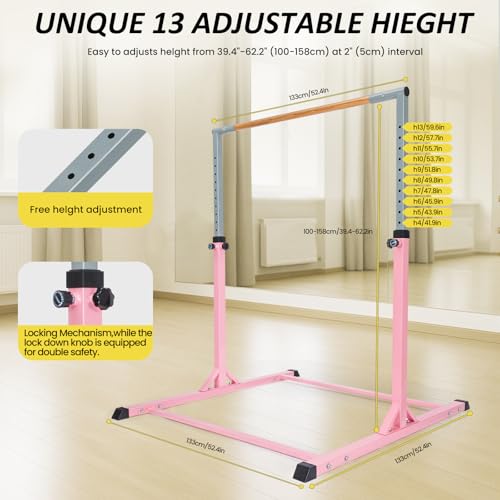 [Height Adjustable & Versatile] – This gymnastics bar for kids features 13 adjustable heights (from 100cm to 158cm), ensuring it’s perfect for growing children. The bar’s height can be easily customized with 4.8cm increments, accommodating kids from beginner to advanced levels.