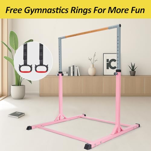 JF HOME BLISS Gymnastics Bar for Kids, Gymnastics Bars with Rings Height Adjustable Horizontal Bar – Safe and Stable Gym Bar for Home Training, Garden, Outdoor & Indoor Use