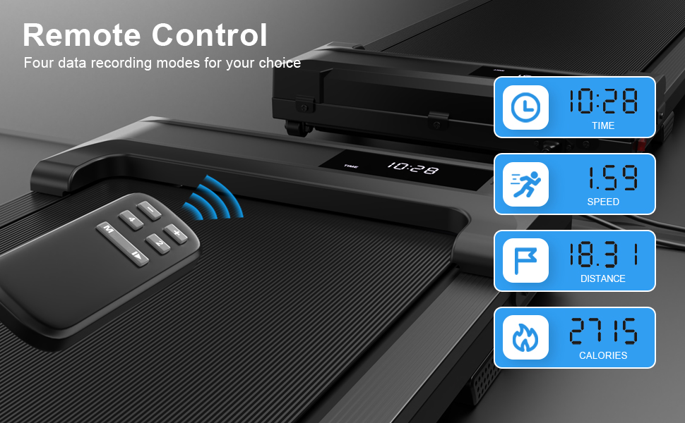 LED Display & Remote Control – Walking pad displays time, speed, calories burned, and distance in real time. Speed and pause functions are adjustable via remote control. Regular use may contribute to basic fitness improvements