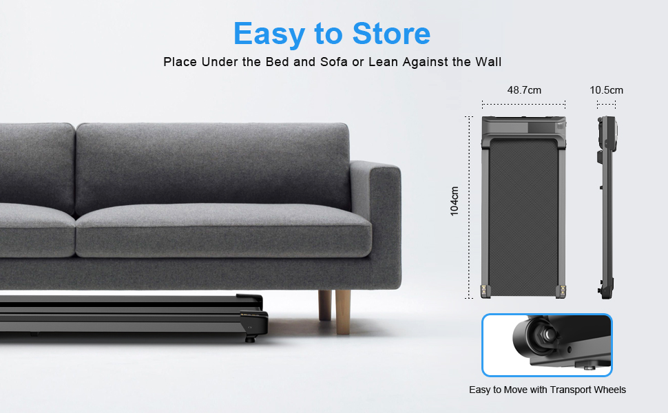 Lightweight & Portable Structure – Weighing 15.5 kg, the walking machine can be carried and relocated by hand. It requires no setup and includes wheels for movement. It can be stored under sofas, beds, or desks, and used while working