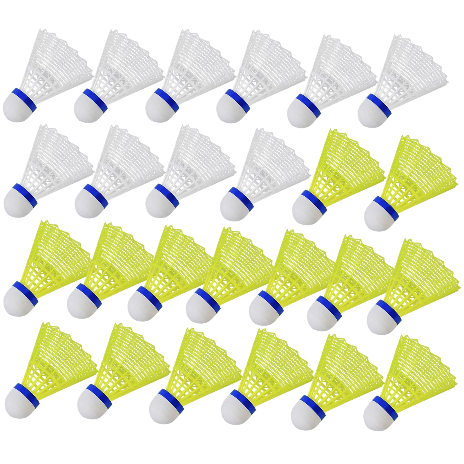 KGJAXF Shuttlecocks Badminton, 25 Pack Nylon Shuttlecocks for Indoor Outdoor Sports, Yellow and White Badminton Shuttlecock with Stable Flight, Durable Shuttlecocks for Training and Games
